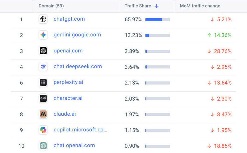 - Usage is not growing across major LLM platforms. See charts, below.